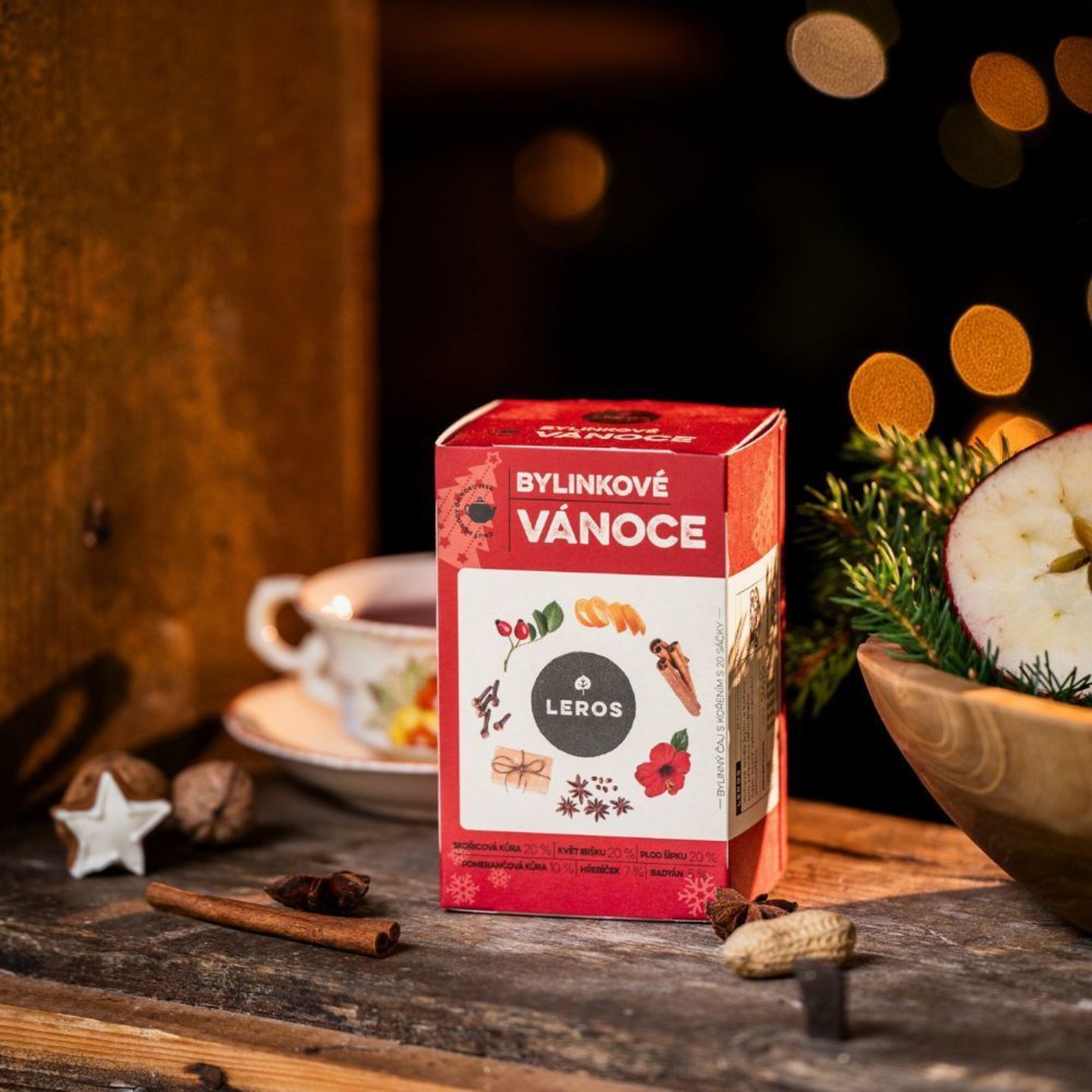 Sváteční chuť bylinek & koření pro kouzelné vánoční chvíle Aromatická vánoční směs s nasládlou chutí skořice a lékořice Vás svojí vůní přenese do Vánoc Vašeho dětství. V čaji nechybí ani badyán, jehož hvězdičkový tvar z něj dělá to nejvánočnější koření na světě. Šípek a pomeranč dodají kořenitému čaji ovocně nakyslou chuť, která se hodí k domácí vánočce i k cukroví podle Vašeho rodinného receptu.