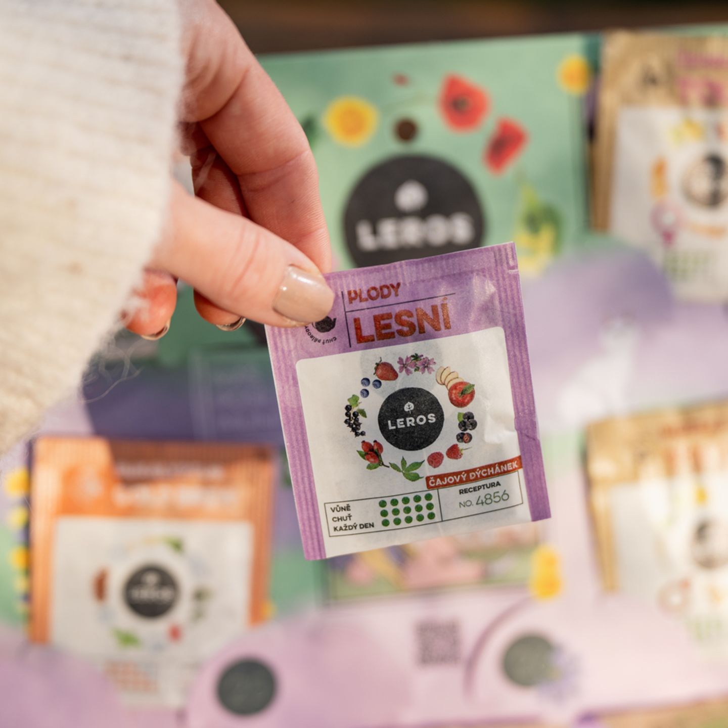 LEROS LESNÍ PLODY 2,2 g, bylinný čaj aromatizovaný. Složení: Plod šípku (20 %), květ ibišku súdánského (13 %), přírodní aroma (10 %), jablka (8 %), plod černého rybízu (7 %), pražený kořen čekanky (6 %), plod borůvky (5 %), plod jahody (5 %), plod maliny (5 %), list ostružníku (5 %), kořen lékořice (5 %), plod arónie (5 %), stévie (3 %), květ slézu (3 %). Příprava: 1 čajový sáček zalijte vroucí vodou (200 ml) a vyluhujte cca 10 minut. Dávkování: 2-3 šálky denně.