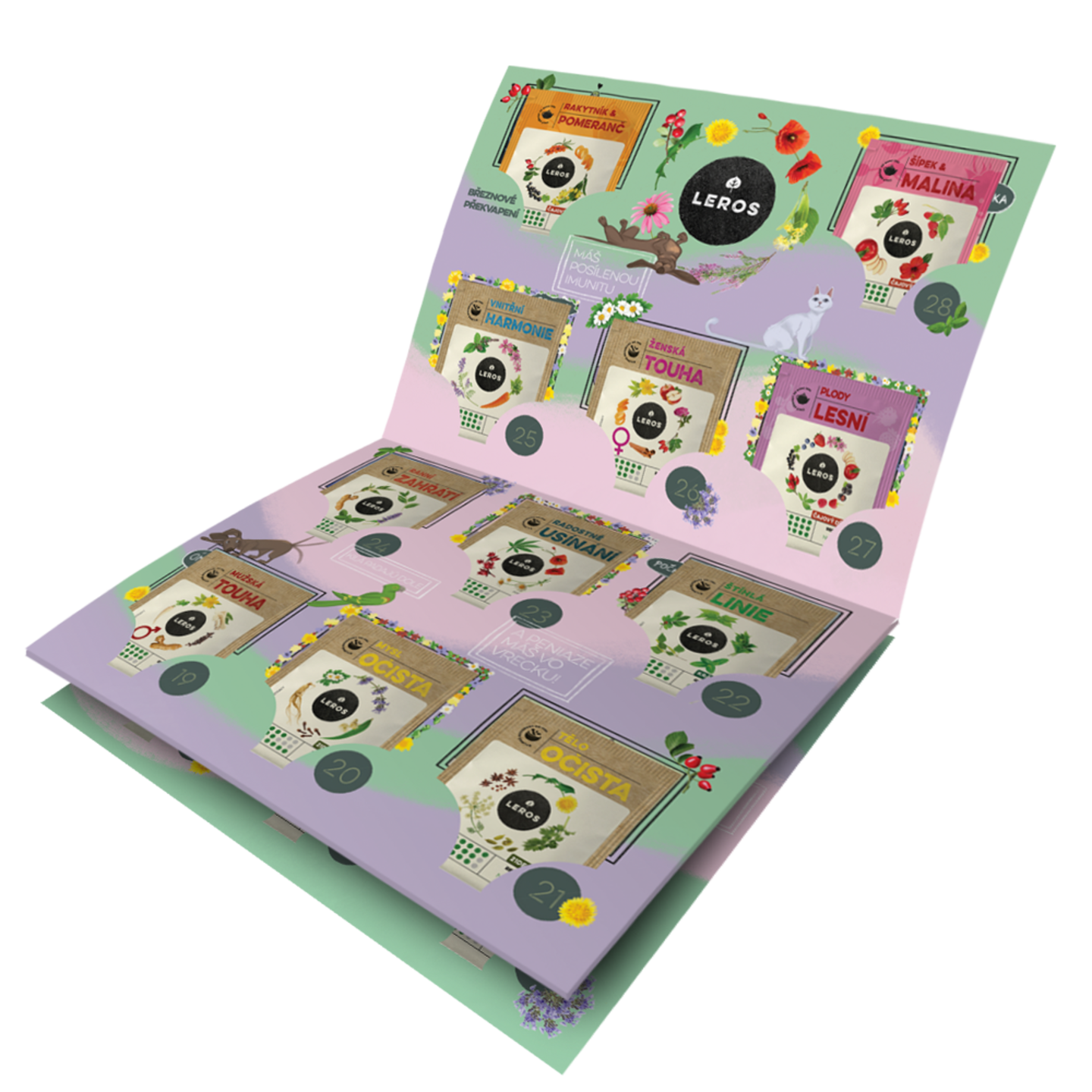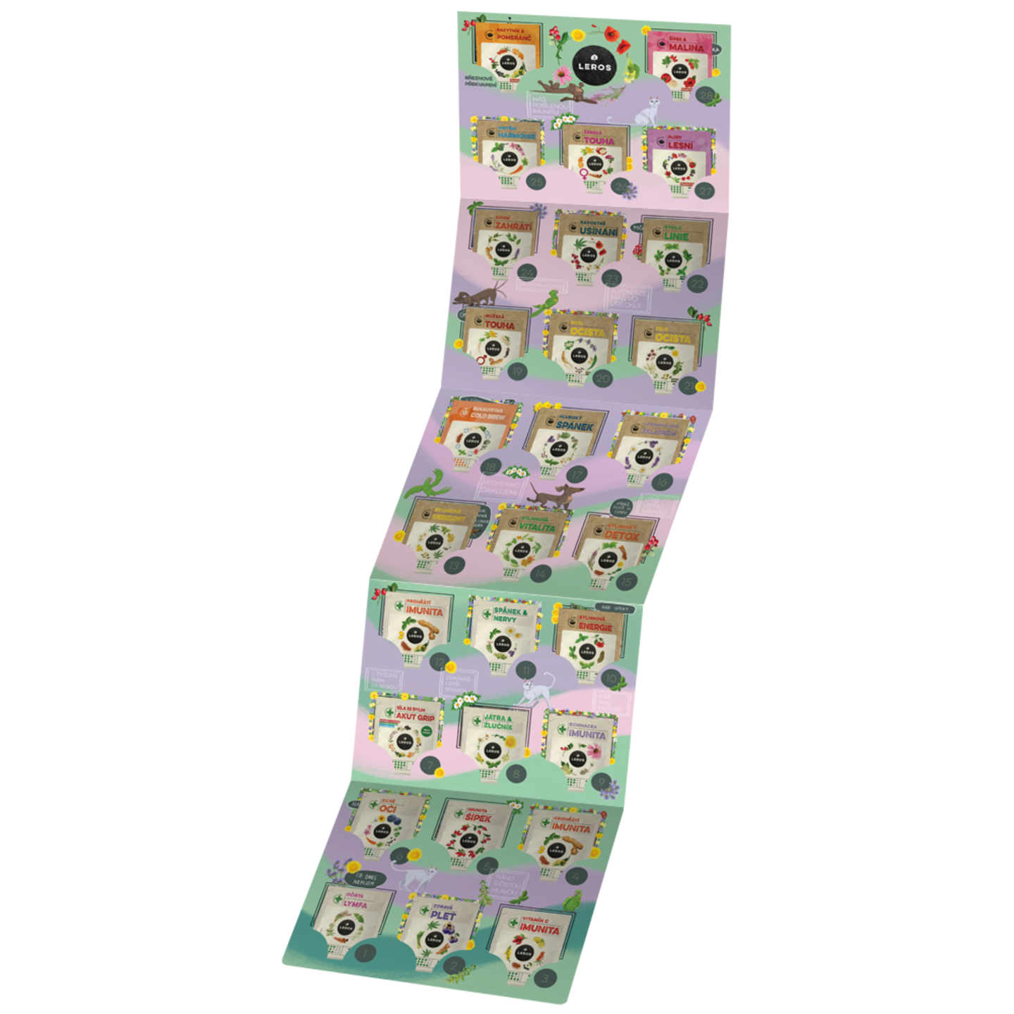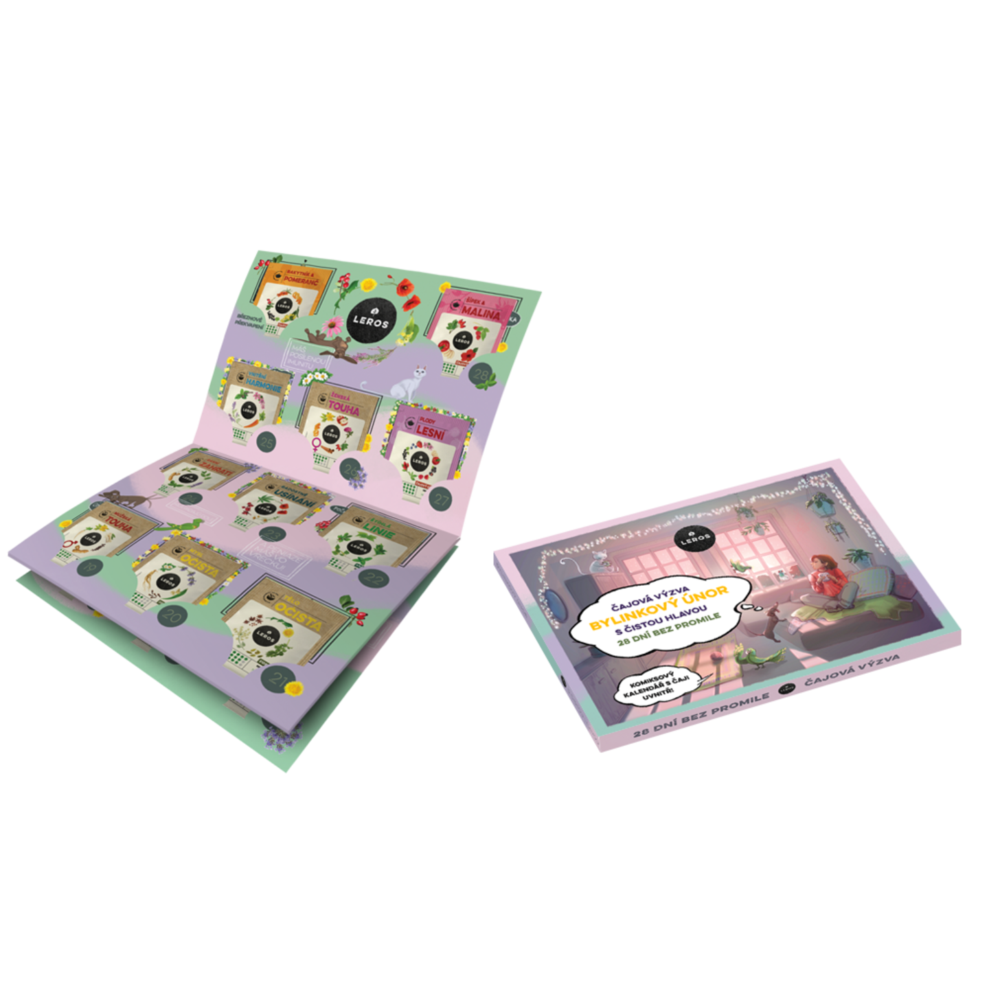 Čajová výzva na 28 dní bez promile. Zkus s námi CELÝ ÚNOR odolat nástrahám a pokušení alkoholu. Kalendář obsahuje 29 bylinných čajů, každodenní motivaci pod QR kódem a zábavnou hru.