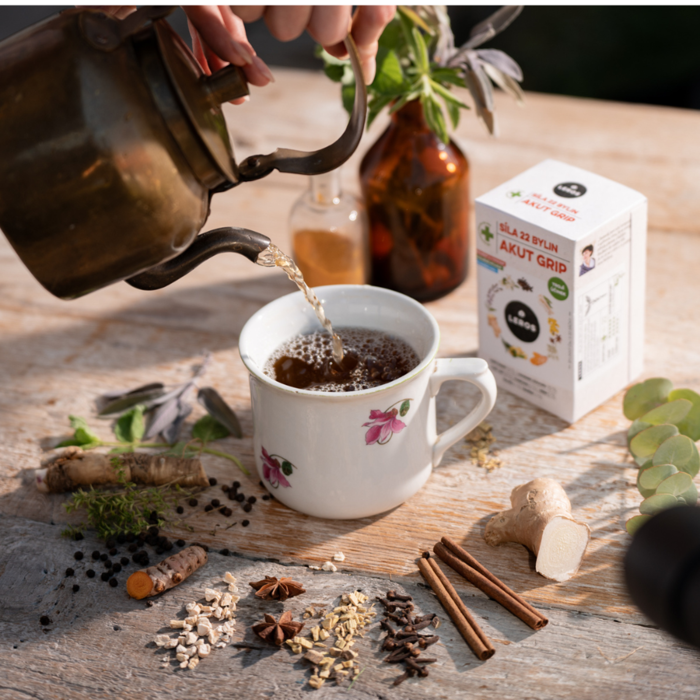 Dopřejte si horký šálek Síly 22 bylin AKUT GRIP, zastavte se a nechte se obejmout silou přírody.