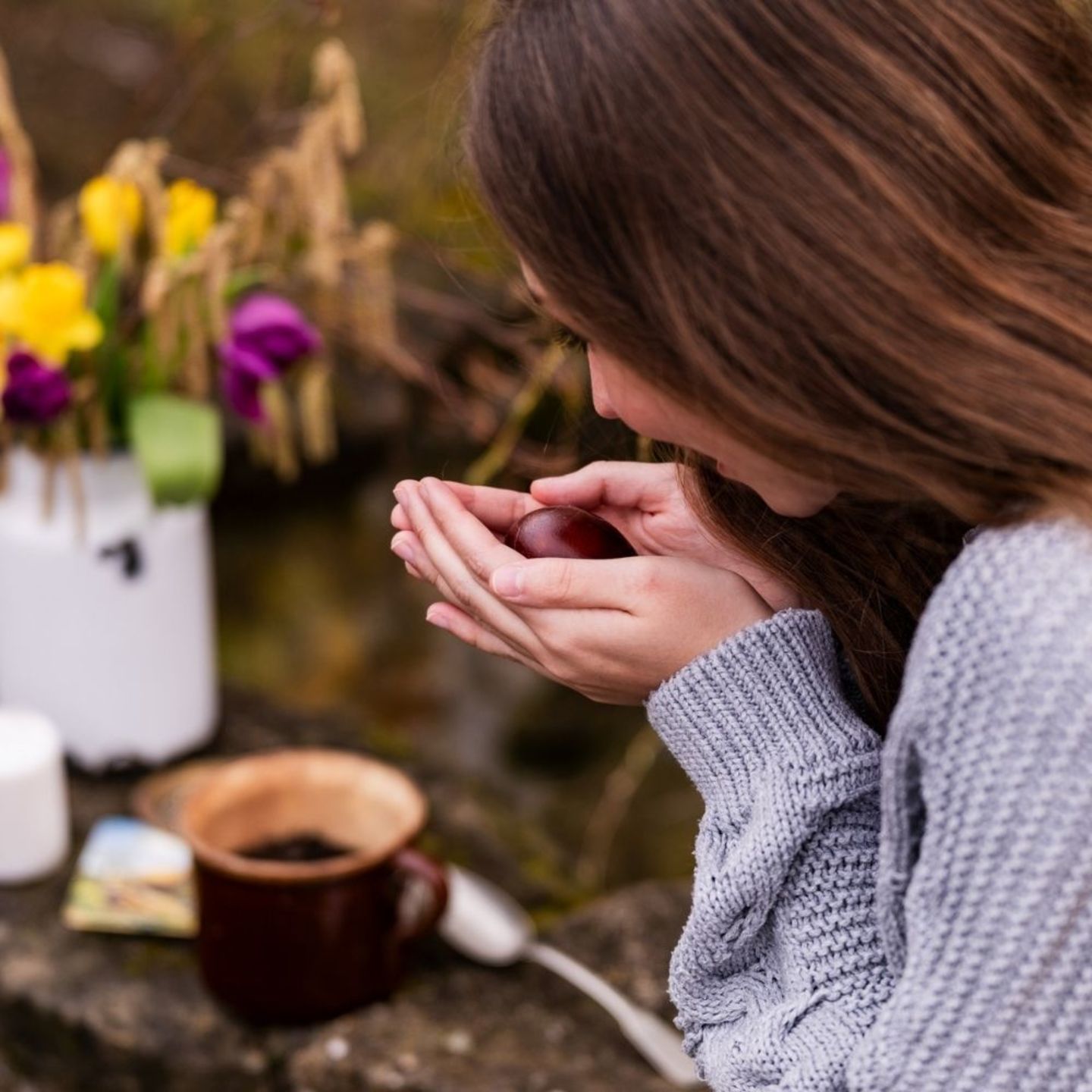 1. Zasaďte svůj záměr. Květináč naplňte do dvou třetin zeminou. Vezměte vejce do obou dlaní a jasně do něj vyslovte svůj záměr pro toto jaro. Buďte konkrétní. Co chcete, aby ve vašem životě vyrostlo?