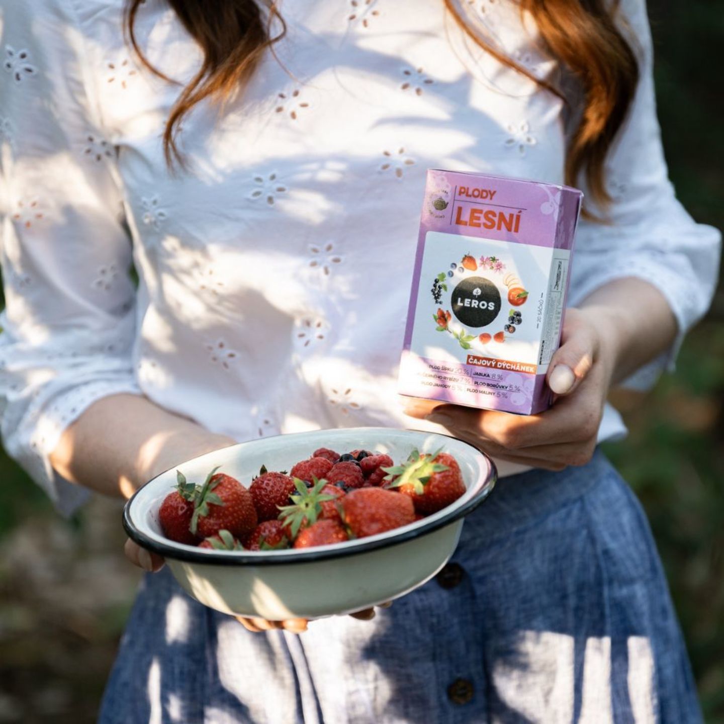 Lesní náruč ovocných plodů Čaj Lesní plody vás provede lesní mýtinou plnou šťavnatého ovoce a voňavých bylin. Sladká jablka se v něm snoubí s osvěžujícím černým rybízem, borůvkami, malinami a jahodami, které dodávají čaji mírnou nakyslost a bohatou ovocnou chuť. Listy ostružiníku spolu s květem slézu propůjčují nálevu jemnost a kulatost. Kořen čekanky a lékořice se postará o příjemnou a plnou chuť s přirozenou sladkostí, kterou podpoří lístky stévie. Tento čaj je ideální společník pro chvíle odpočinku po dlouhém dni nebo víkendové lenošení s knihou.