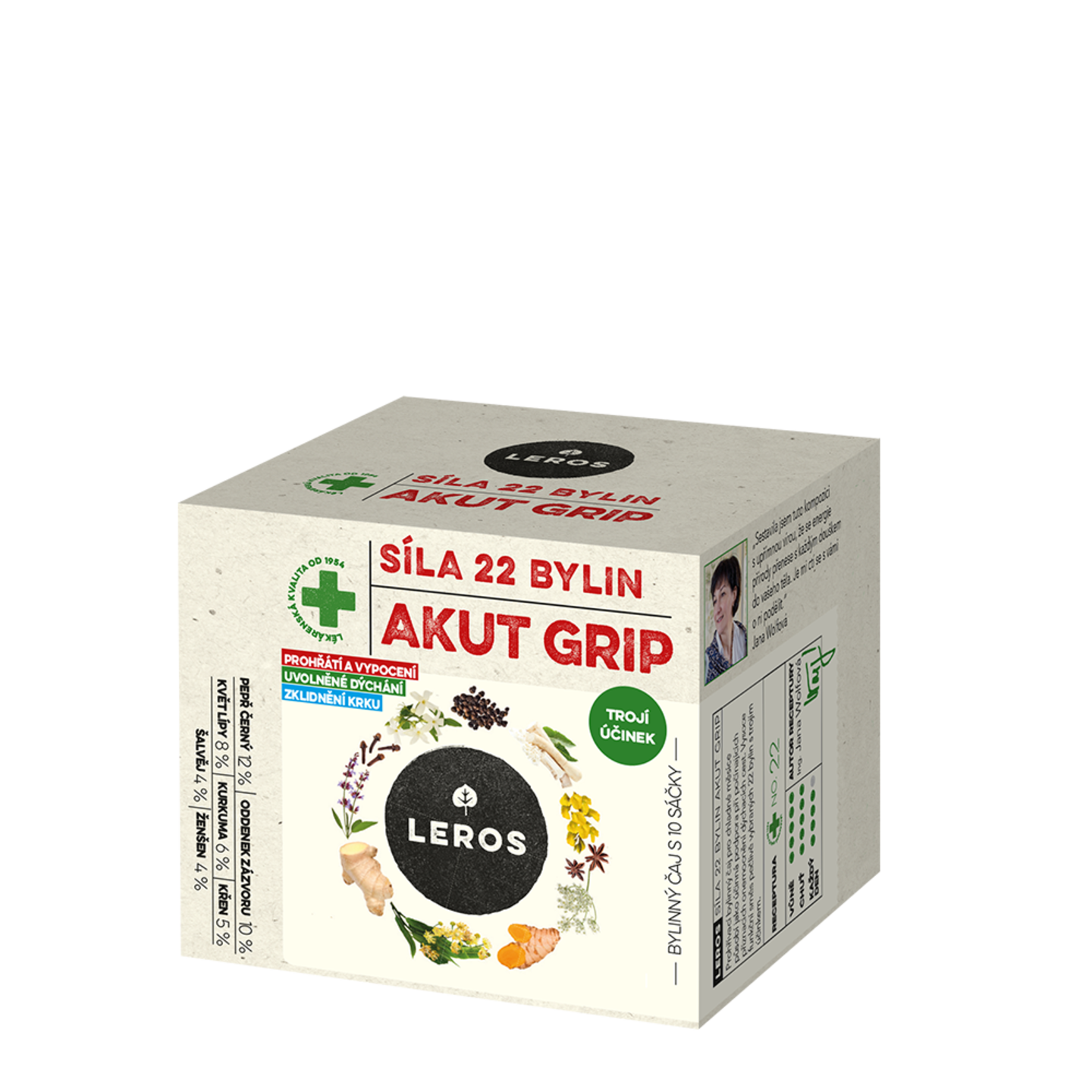 Trojí účinek 22 bylin - prohřátí a vypocení, uvolněné dýchání a zklidnění krku. Vysoce funkční prohřívací směs pro podporu obranyschopnosti a normální funkci dýchacích cest. Výjimečná kombinace 22 bylin posílí imunitní systém a celkovou vitalitu těla. Ideální čaj, když na vás něco leze.