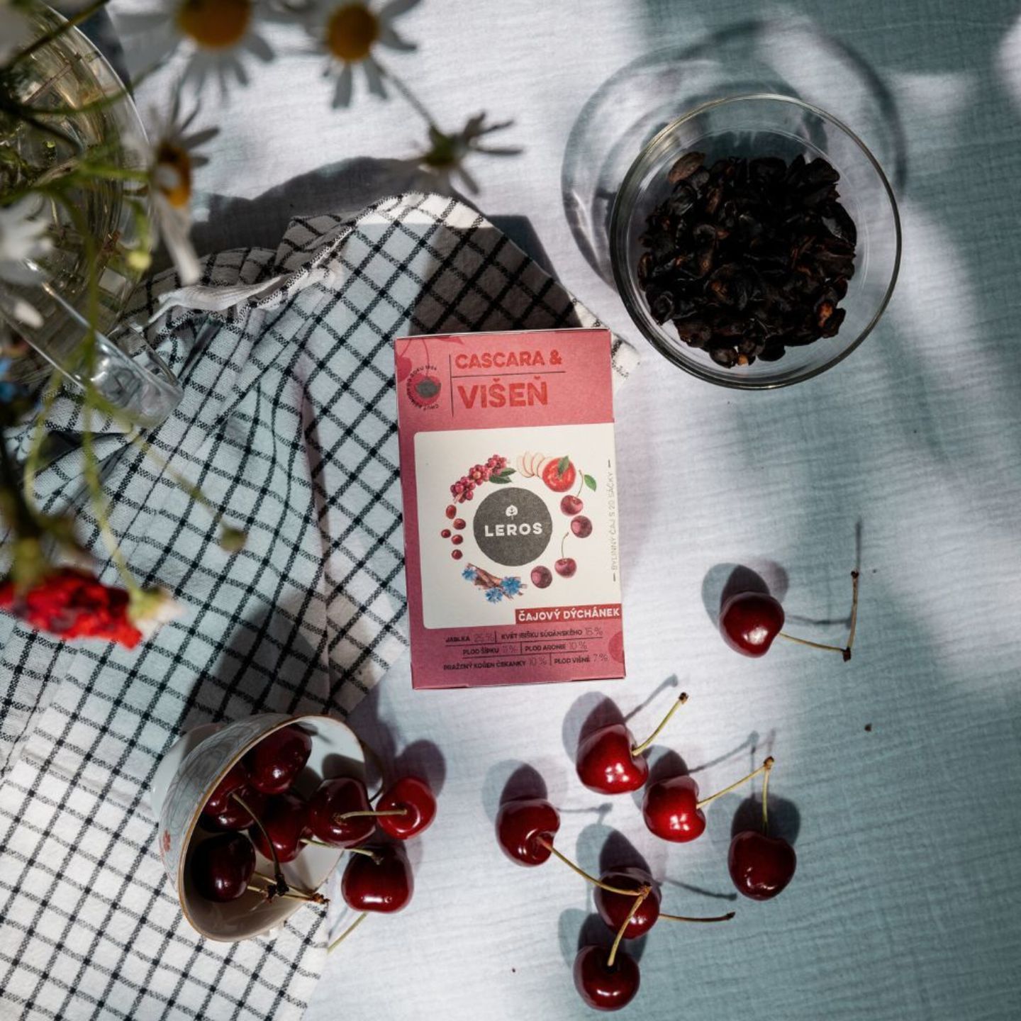 Višňové pohlazení s cascarou Ovocný čaj s višní a cascarou je lahodnou směsí se svěží kyselkavostí, jemnou sladkostí a je přirozeným zdrojem energie. Šťavnaté višně dodávají nápoji příjemnou nakyslost, kterou vyvažuje čekanka svou jemnou nasládlostí. Cascara přináší tóny sušeného ovoce. Čaj je ideální pro osvěžení a povzbuzení kdykoliv během dne. Chutná skvěle jako horký i ledový nápoj. CO JE TO CASCARA? Je to kávová třešeň, neboli oplodí a slupka, která obaluje kávové zrno. Je přirozeným zdrojem kofeinu, takže jemně povzbudí a dodá energii. Obsahuje také antioxidanty, které přispívají k ochraně buněk před oxidačním stresem a podporují vitalitu.